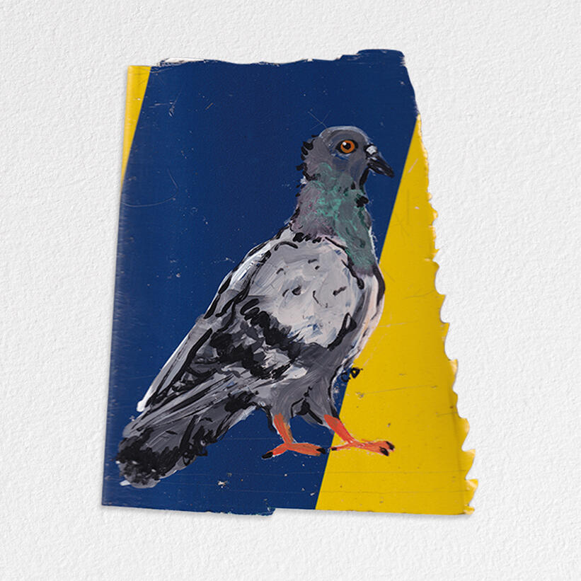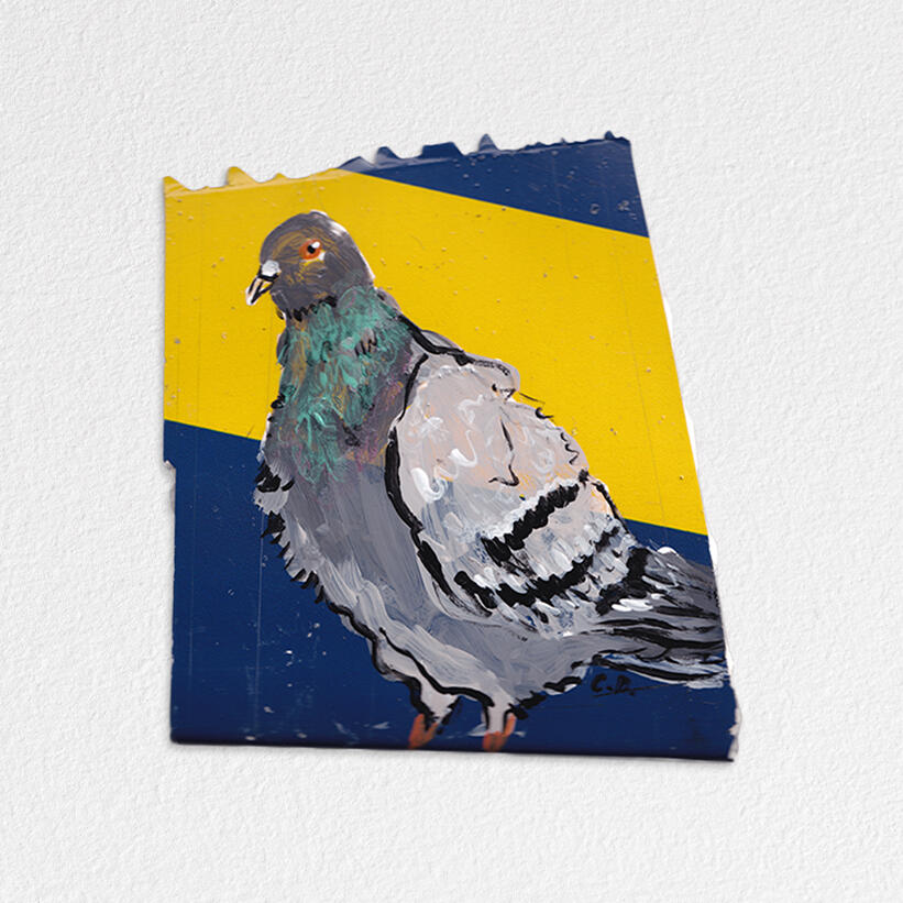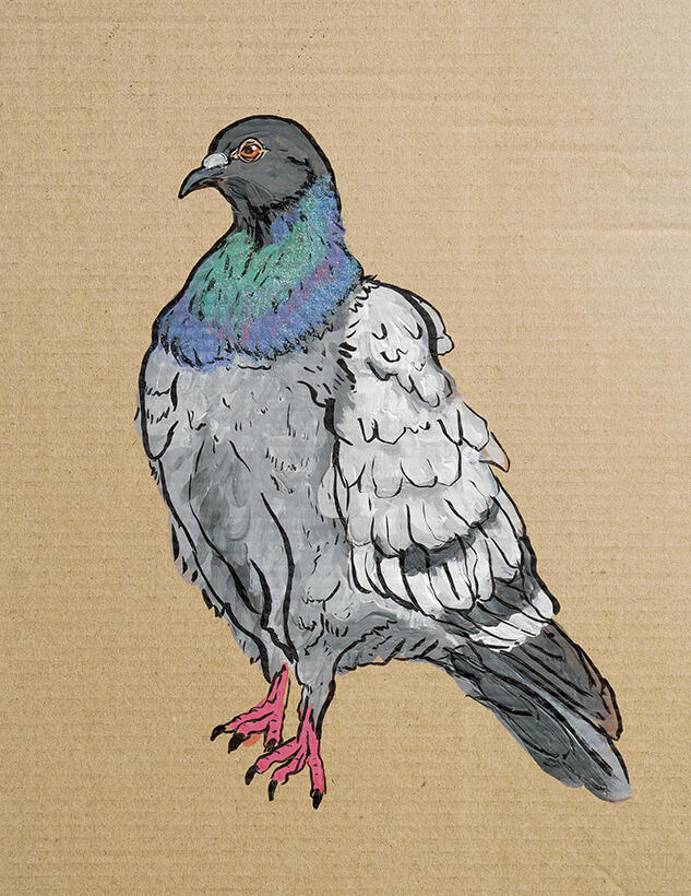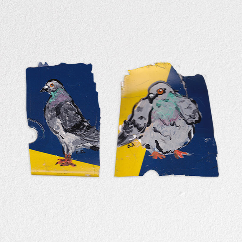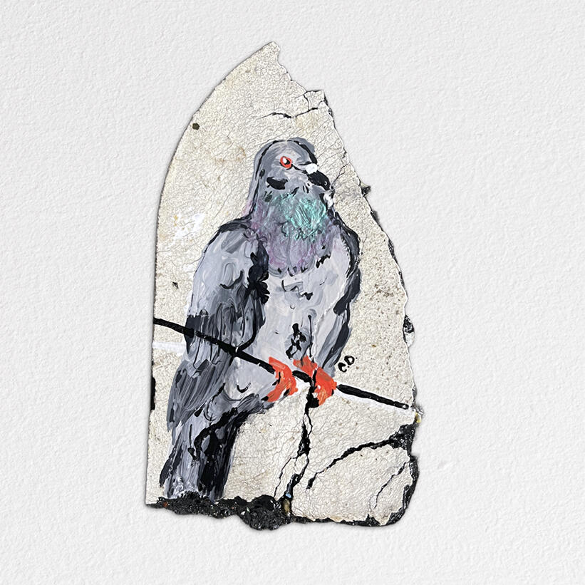 Pigeons on found NYC material - Deep Space Gallery, 2025